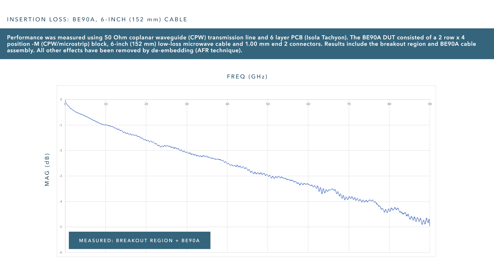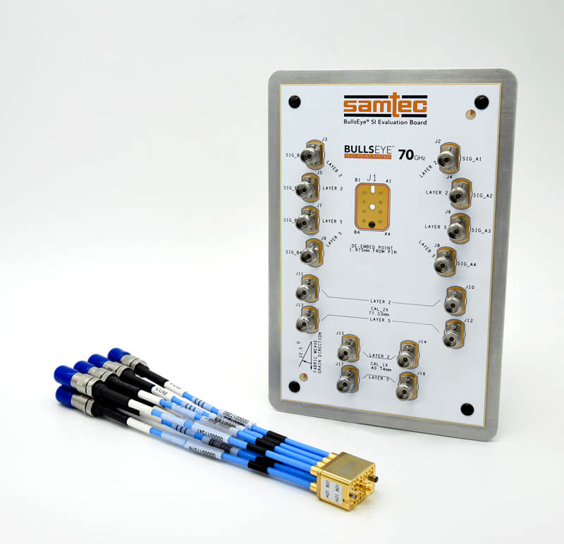 Bulls Eye®块压缩安装到电路板上,可直接放置在被表征的SerDes附近。无焊接设计降低了整体成本,并且易于在实验室环境中使用。电缆组件的2端使用以下任一连接器选项连接到仪器:1.00 mm、1.35 mm、1.85 mm、2.40 mm 或 2.92 mm。对于接近完美的224 Gbps PAM4 SerDes特性表征,BE90A是首选组件。但是,正如 SAMTEC 的 现场 224 Gbps PAM4 演示所证明的那样,在考虑某些 SI 优化时,BE70A 组件也能够处理 224 Gbps PAM4(请联系 [email protected]).